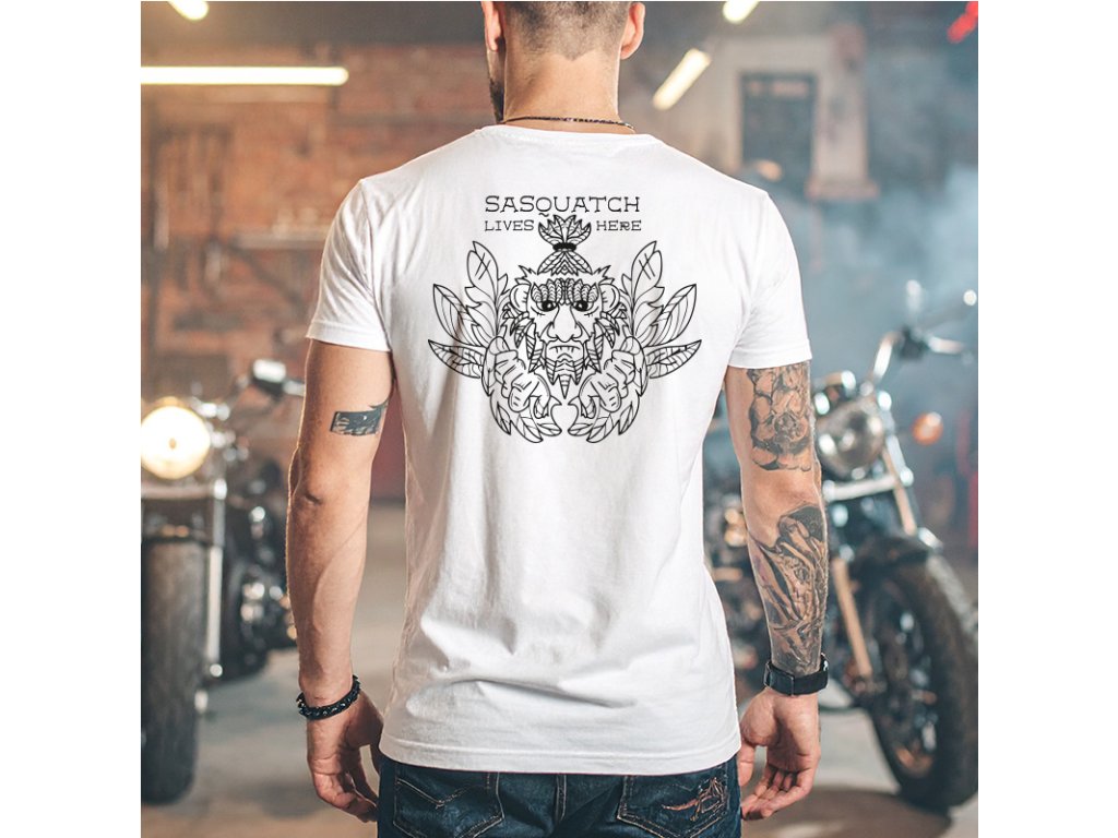 Tričko "Sasquatch Lives Here" | Motorkářské tričko s motivem tajemného obra z džungle