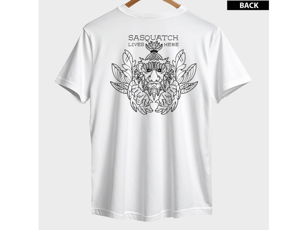 Na zádech trička dominuje výrazná grafika: hlava mytického Sasquatche, jako by právě vystoupil z džungle. Design je detailní, ostrý, černobílý – přesně takový, jaký se hodí k pořádný mašině.