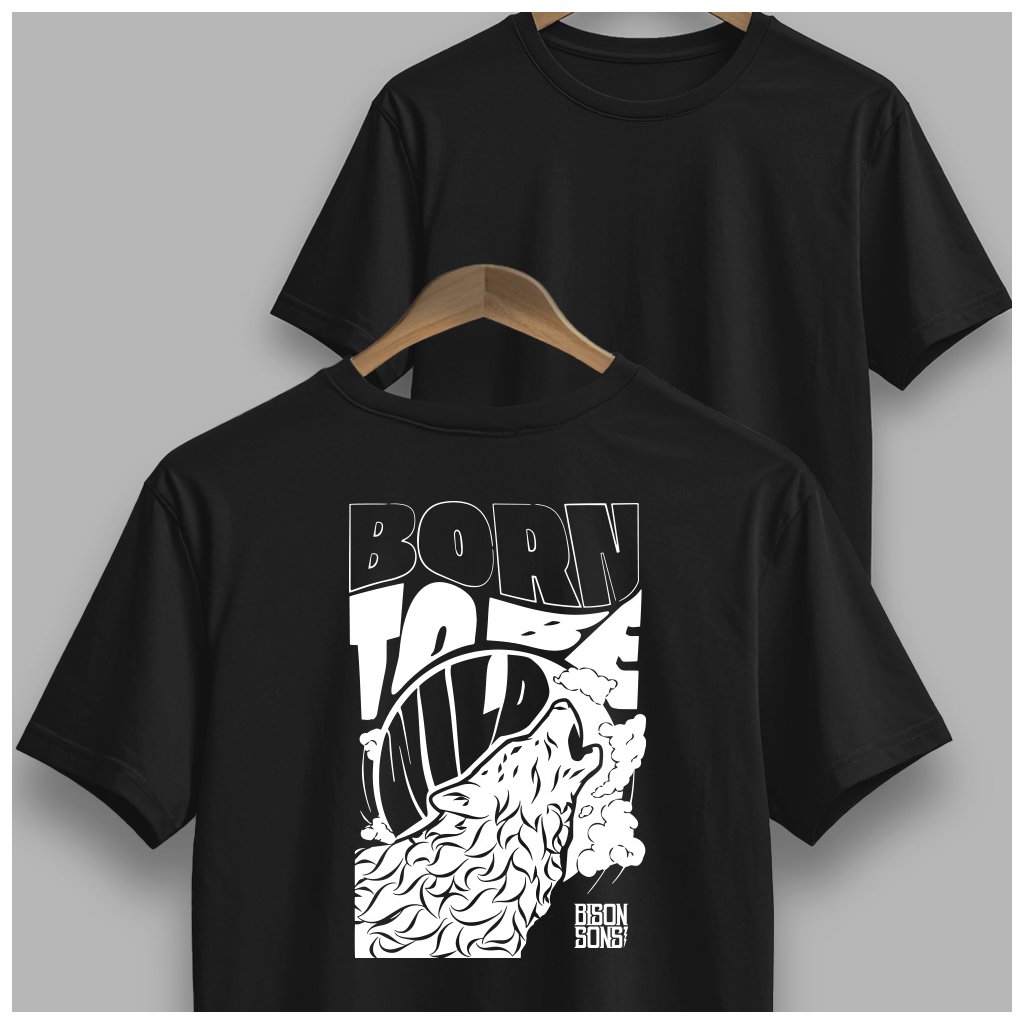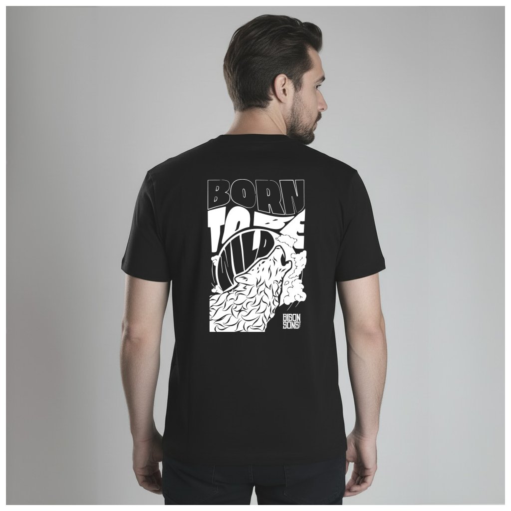 Pánské černé tričko BISON SONS – Born to be wild (Regular/Universal fit)
