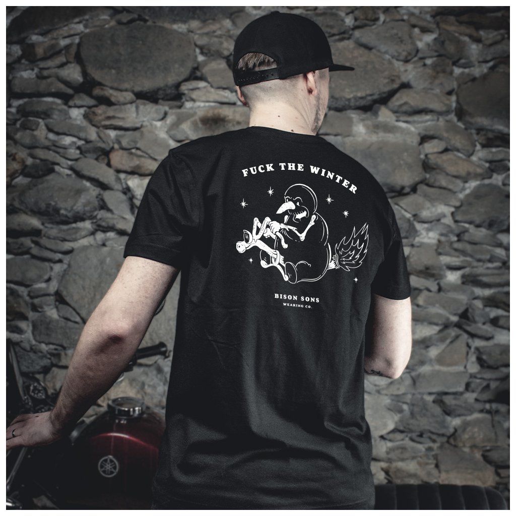 Pánské černé tričko BISON SONS – FCK the winter (Regular/Universal fit)