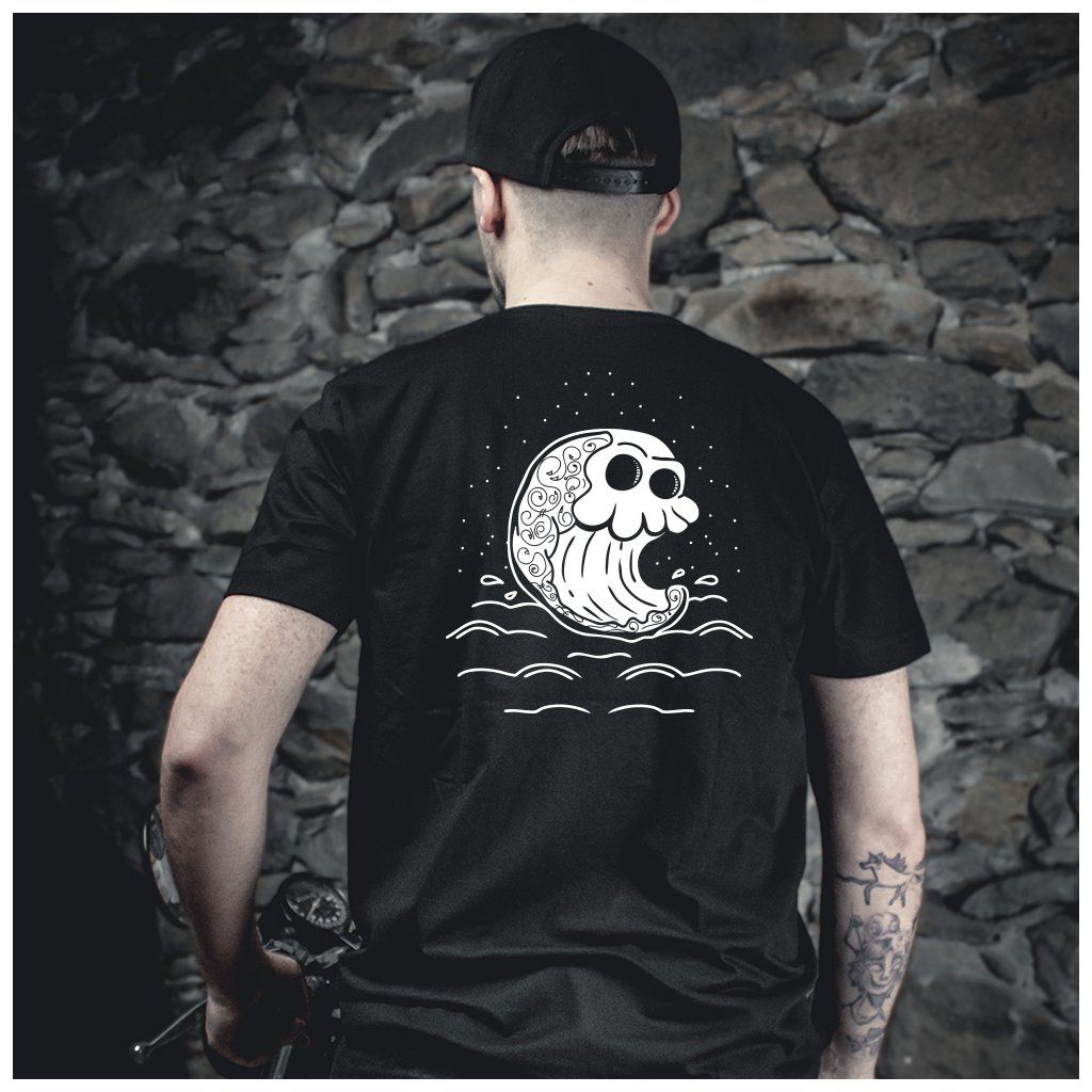 Nespoutaná síla oceánu přímo na tvých zádech. Motiv „Wave“ jsem vlastnoručně nakreslil tak, aby v sobě nesl klid noční oblohy i dravost lámající se vlny. Je to kousek pro chlapy, co mají rádi přírodu a styl, kterej není jen na povrchu. S tímhle tričkem z mojí dílny dáváš jasně najevo, že se nenecháš jen tak unášet proudem, ale tvoříš si svou vlastní cestu – ať už na vlnách, na cestách nebo v životě.