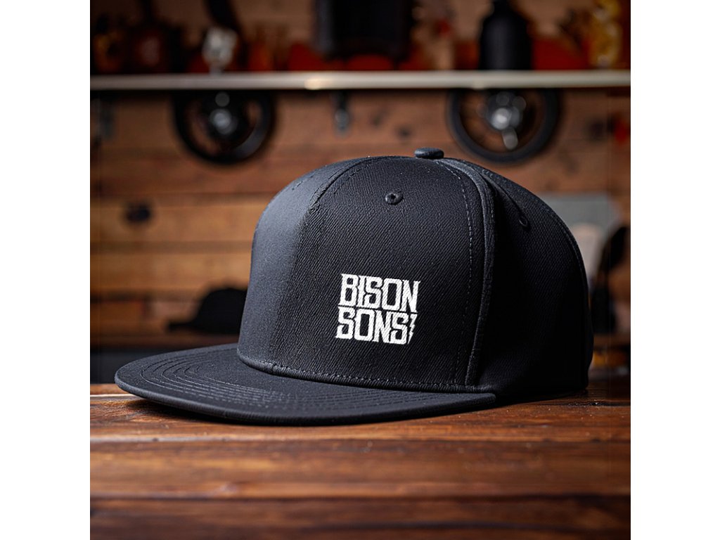 Snapback BISON SONS v černé barvě s výrazným bílým logem je odolný doplněk, který doplní každý styl.
